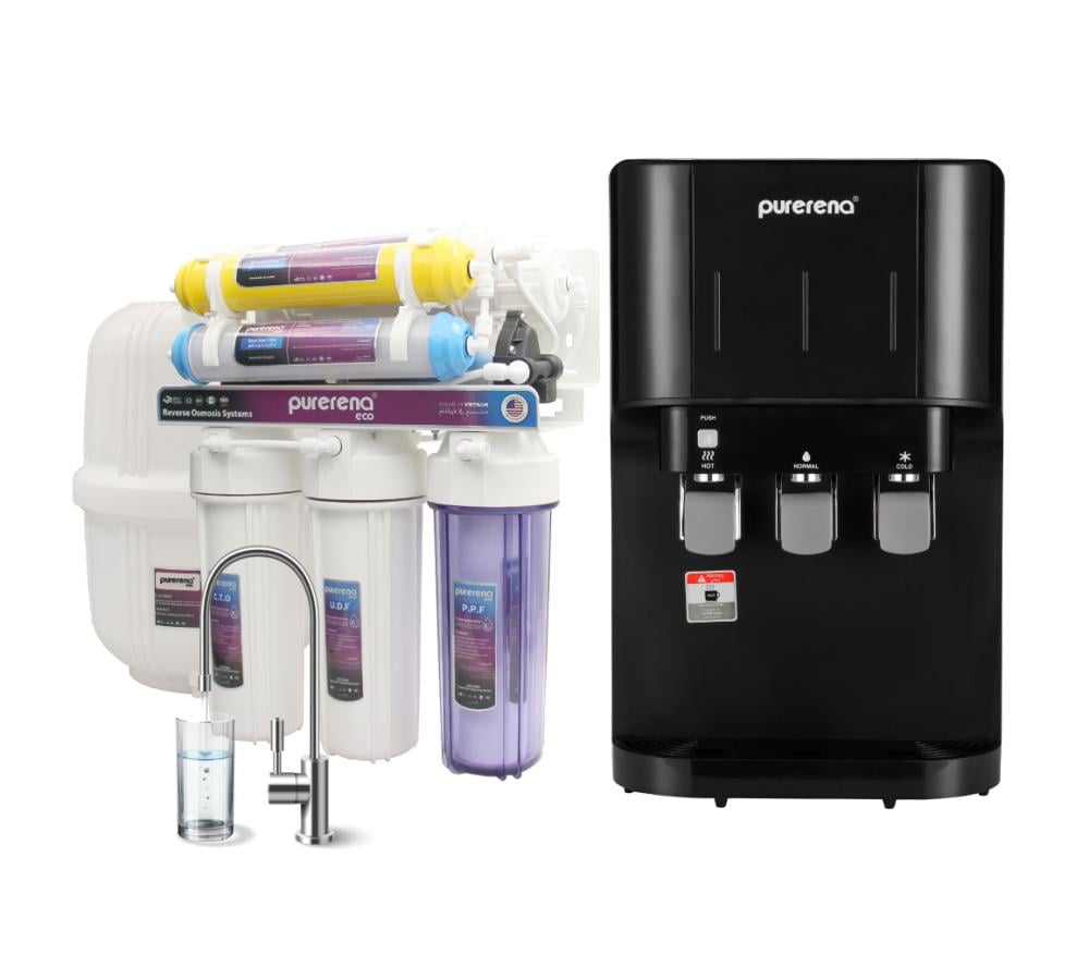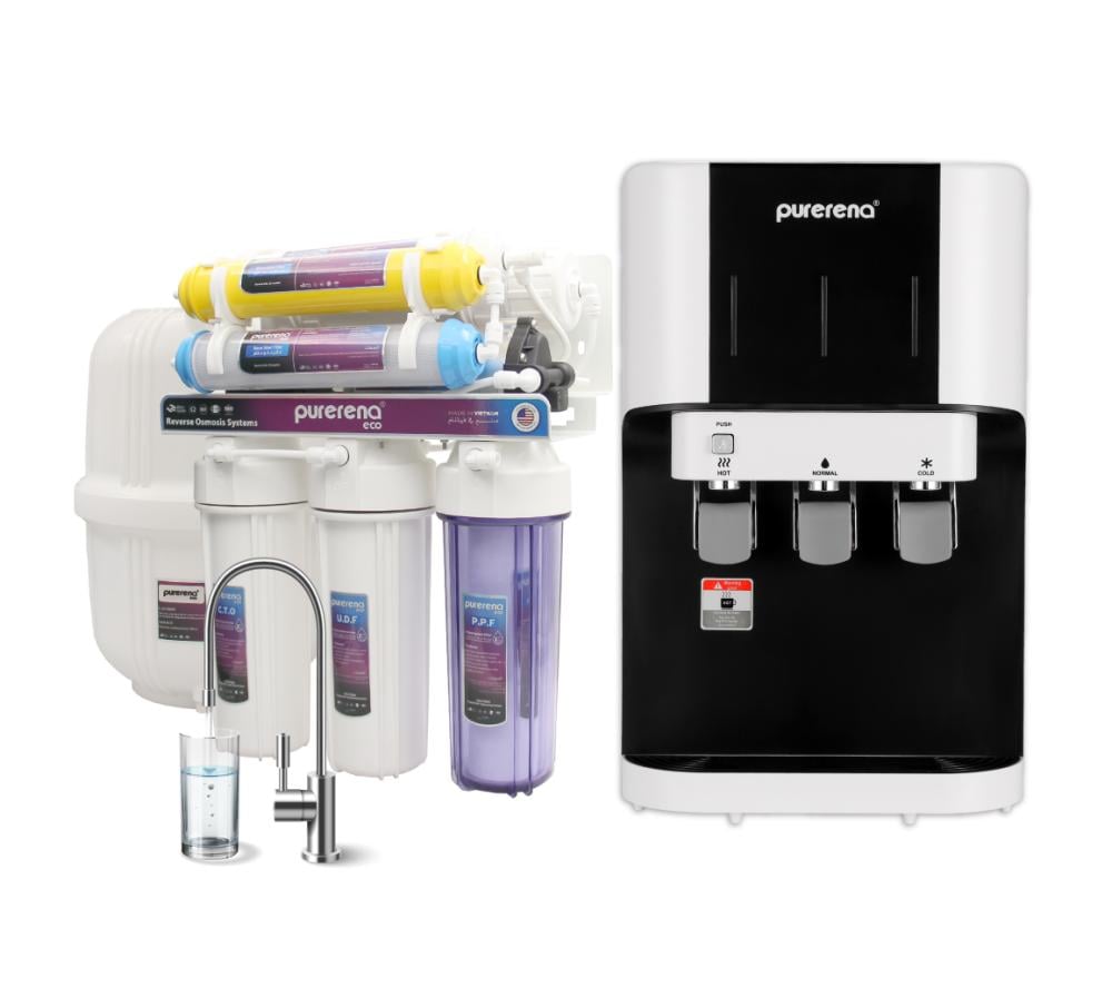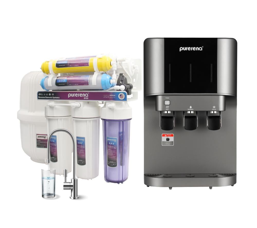 فلتر ماء 7 مراحل مع برادة طاولة موديل ماسة بقدرة 100 جالون يوفر لك مياه نظيفة ونقية وصحية بدون شوائب او عناصر ثقيلة أو جراثيم، ليحميك من الأمراض التي تسببها المياة الملوثة و غير النقية، من الآن لست بحاجة لشراء المياه المعبأة، و يمكنك الحفاظ على صحتك و صحة عائلتك مع جهاز تحلية المياه ذو السبع مراحل يوفر لك و لعائلتك كوب ماء نظيف و حياة صحية آمنة يتم تركيبه في المطبخ تحت المجلى ينتج في اليوم 370 لتر ماء نقي وصحي 100% و يمكن التحكم بنسبة الأملاح حسب الرغبة، توريد و التركيب مجاني
