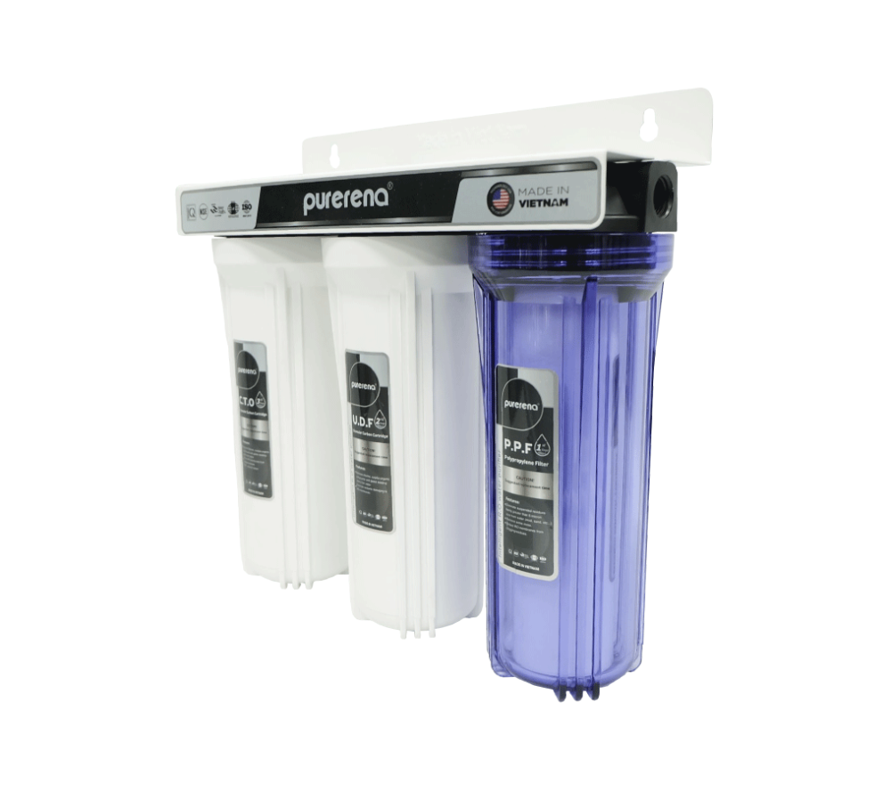 فلتر تنقيه المياه ثلاث مراحل هو جهاز تنقية المياه الذي يتكون من ثلاث مراحل تعمل على إزالة الشوائب والملوثات الموجودة في المياه الخام وتحسين جودة المياه المستخدمة في المنزل. يتم تثبيت الفلتر بين صنبور الماء او الصنبور بحيث يمر الماء عبر ويتم تنقيته قبل استخدامه.